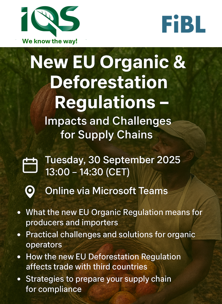 We are pleased to announce our Webinar: New EU Organic and Deforestation regulations - Impact and challenges for supply chains.